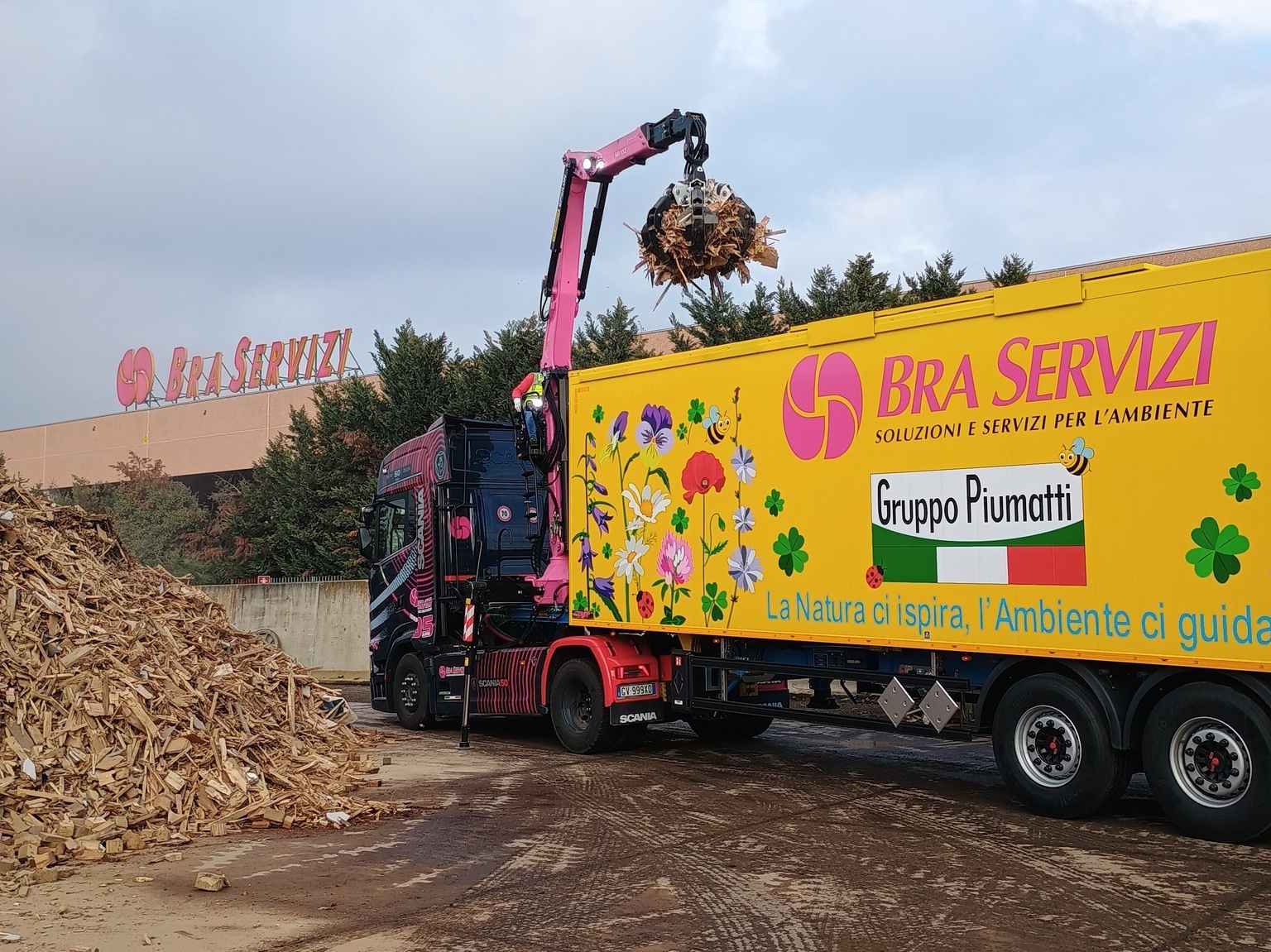 - Призначення: для перевезення деревини, тирси та інше із маніпулятором PALFINGER